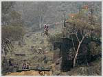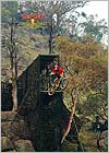 Ponad kilometrowa traska obfitowała w różne różniste przeszkody, najciekawsze to 9-metrowy drop, 14 metrowy dircik (sic!), wall ride (na zdjęciu) wielka ruchoma platforma (tez na zdjeciu) na ktora wjezdzalo sie z platformy, i trzeba bylo ustac kilka sekund po wytraceniu predkosci, by nastepnie pojechac dalej...