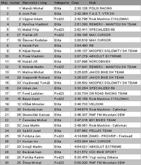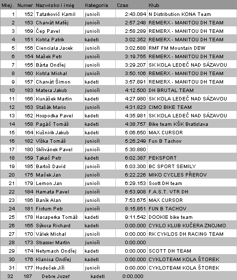 . w juniorach bardzo dobrze wypadł Jacek Cienciała zajmując bardzo dobre 5 miejsce, wygrał tradycyjnie już Kamil Tatarkowic