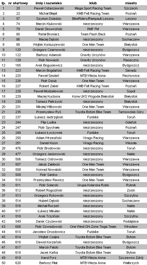 foty Siwy i Robin Zabel wszelkie prawa oczywiście zastrzeżone oraz lista startowa wraz z wynikami: